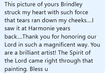 This painting when it was done stood in my studio, all of its 2 x 3 meter size like a screaming did not have a mild effect on people statement encountering it. There was nothing like it and we did not know what to do with it. So yes, we waited on the Lord, He ordered it, so He will take it further.